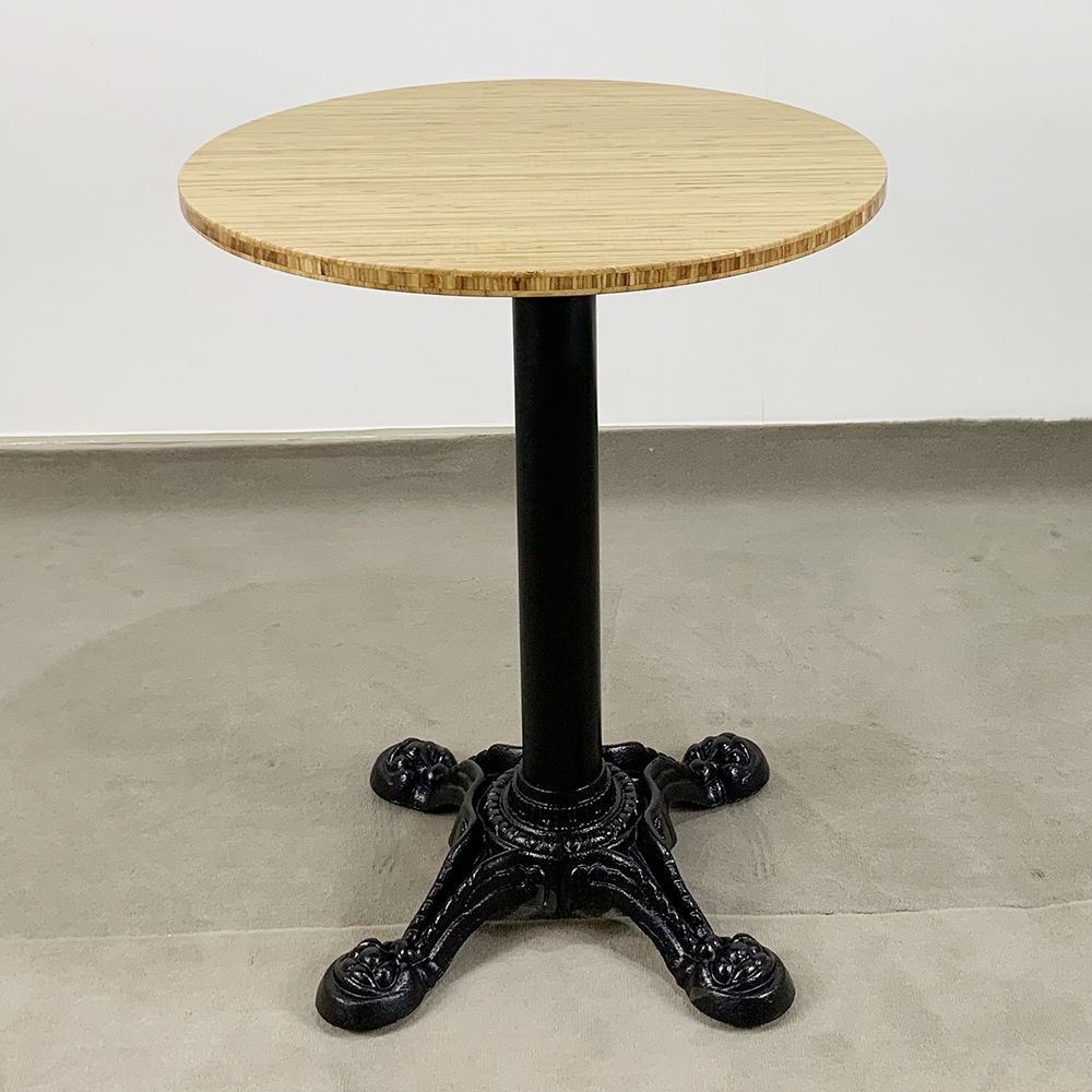 Bàn cafe tròn mặt bàn gỗ tre chân sắt đế gang 4 chĩa