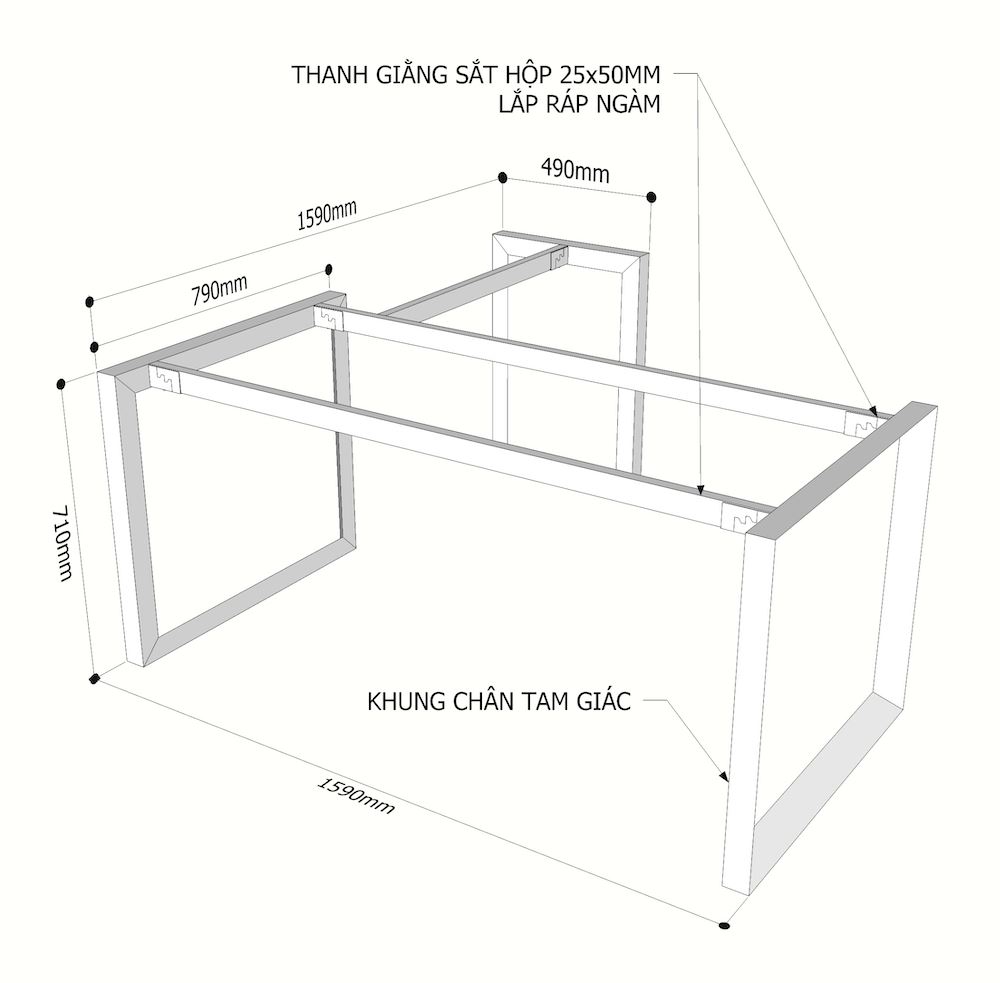 Kích thuớc chân sắt lắp ráp cho bàn L 160x160cm