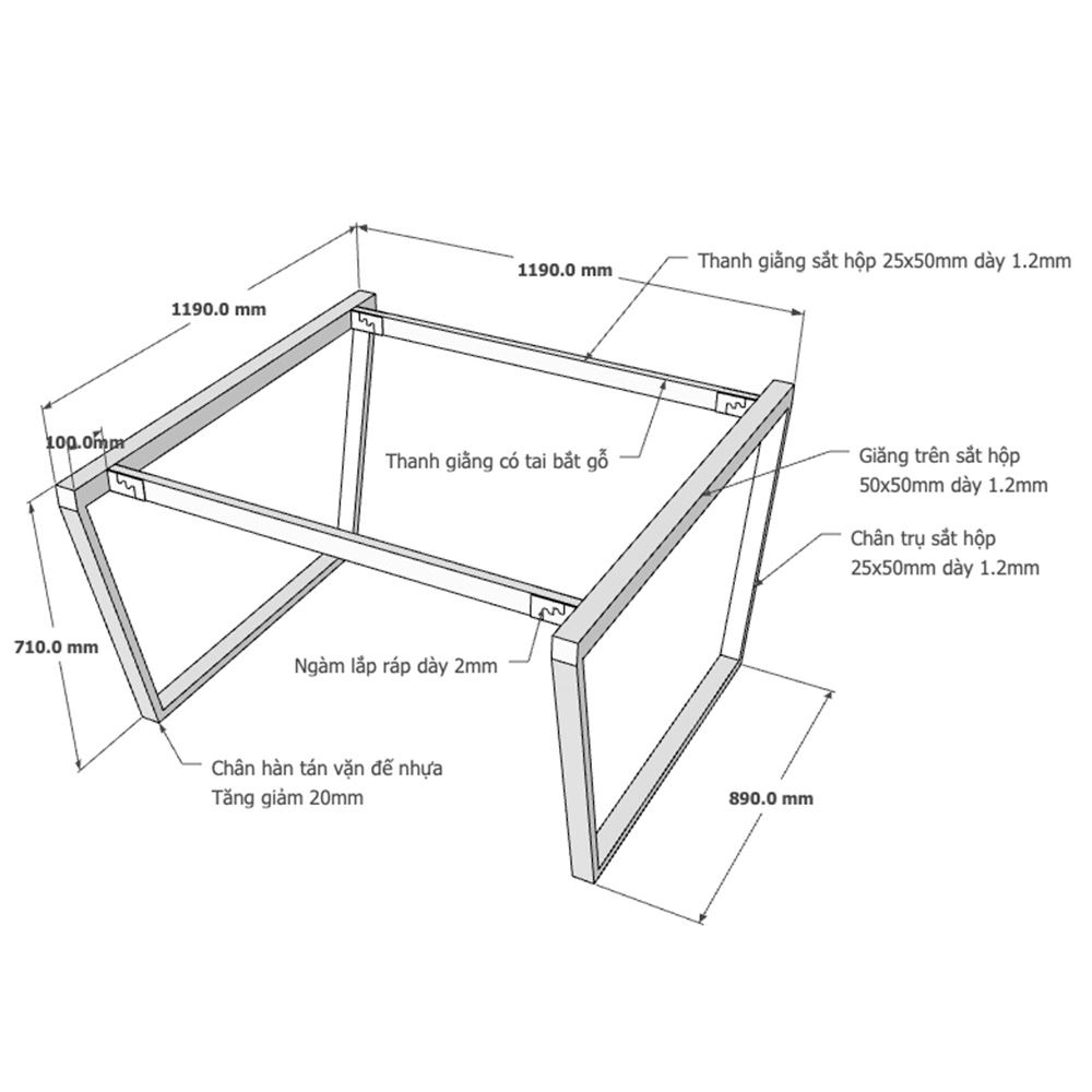 Kích thước chi tiết chân sắt lắp ráp cho bàn 120x120x75cm