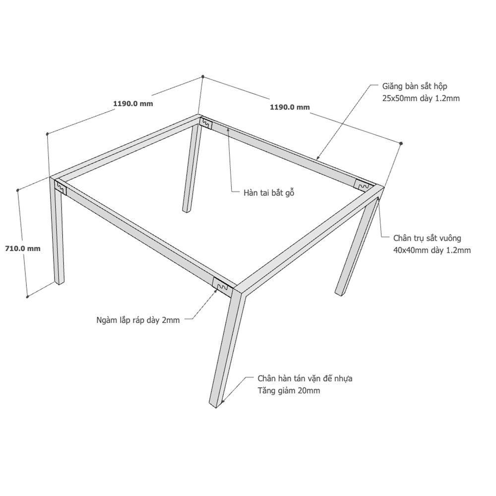 Kích thước chân sắt lắp ráp cho bàn cụm 2 120x120cm