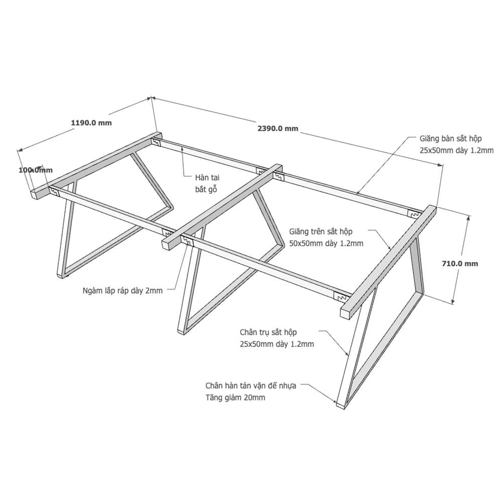 Kích thước chân sắt lắp ráp cho bàn cụm 4 hệ Trapeze 2