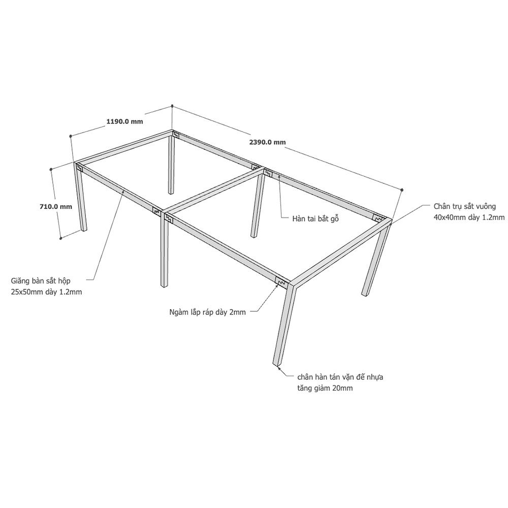 Kích thước chân sắt lắp ráp cho bàn cụm 4 240x120cm