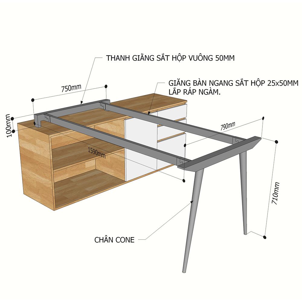 Kích thước chân sắt cho bàn gác tủ mặt bàn 160x80cm