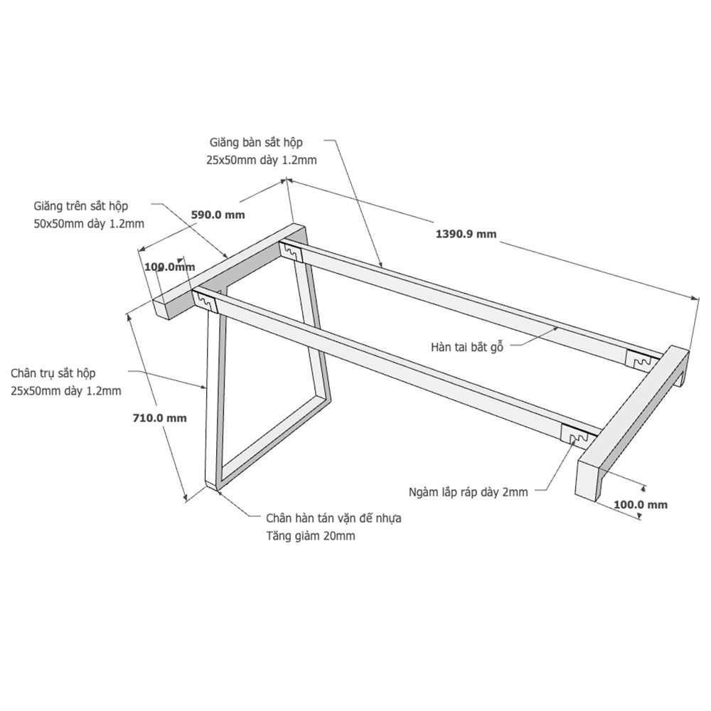 Kích thước chân sắt lắp ráp cho bàn gác tủ 140x60cm