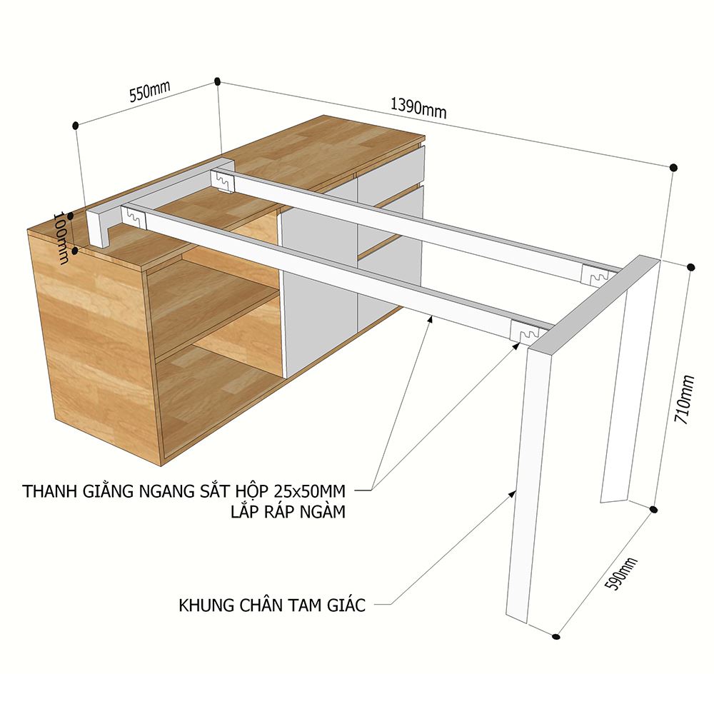 Kích thước chân sắt lắp ráp cho bàn gác tủ mặt bàn 140x60cm
