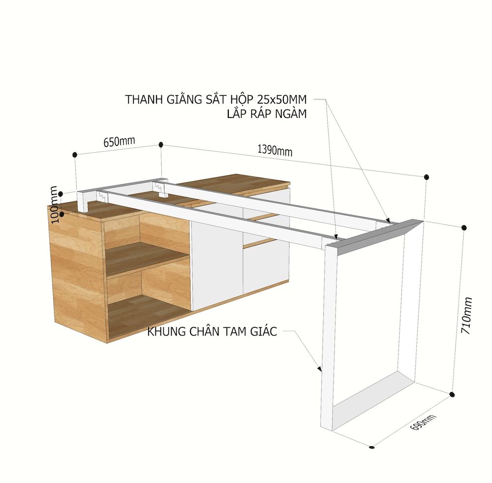 Chân bàn gác tủ 140x70cm sắt tam giác lắp ráp