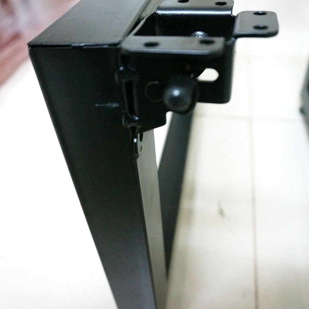Chân Bàn Gấp Gọn CHB68003 được sản xuất bằng sắt hộp ống 4x4 cm, loại sắt dày 1,2 ly rất chắc chắn, bên ngoài được phủ lớp sơn tĩnh điện chống trầy và chống gỉ. Các mối hàn với bản lề chân gấp gọn được hàn cần thận và chắc chắn, luôn đảm bảo độ bền trong suốt thời gian sử dụng. Các phụ kiện chân bàn gấp còn có 4 núm nhựa gắn trực tiếp bên dưới giúp hệ thống chân bàn luôn đảm bảo độ ổn định và chống trầy xước nền nhà.