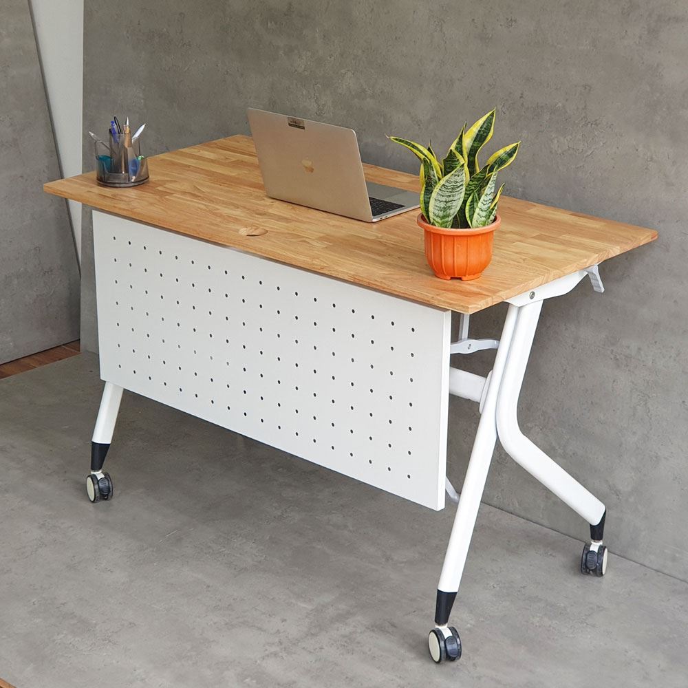 Dưới chân bàn gắn bánh xe giúp việc di chuyển và sắp xếp dễ dàng hơn