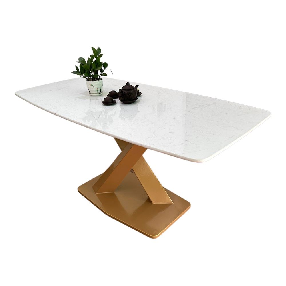 Bàn ăn sang trọng mặt đá trắng chân sắt kiểu