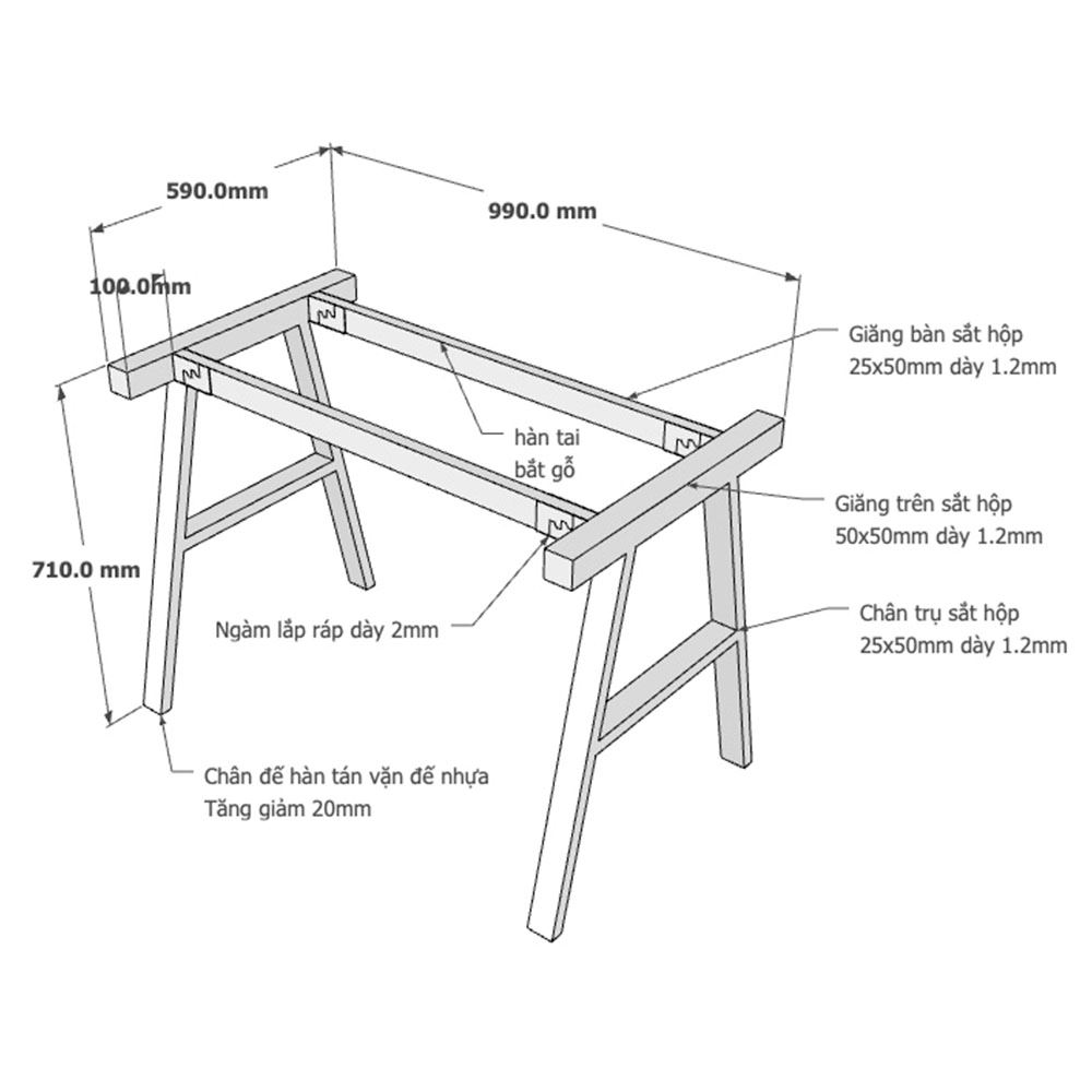 Kích thước chân sắt lắp ráp cho bàn 100x60x75cm
