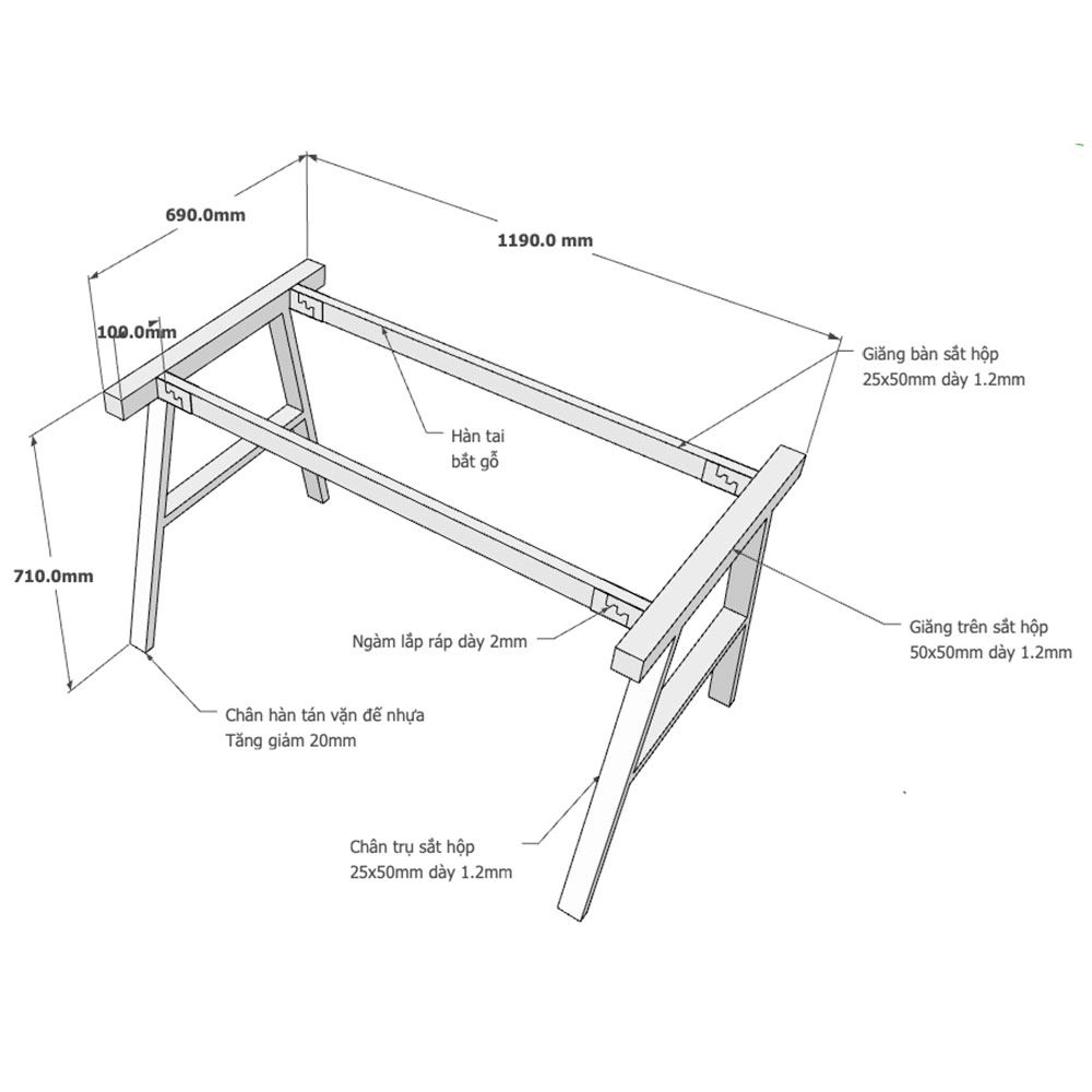 Kích thước chân sắt lắp ráp cho bàn 120x70x75cm