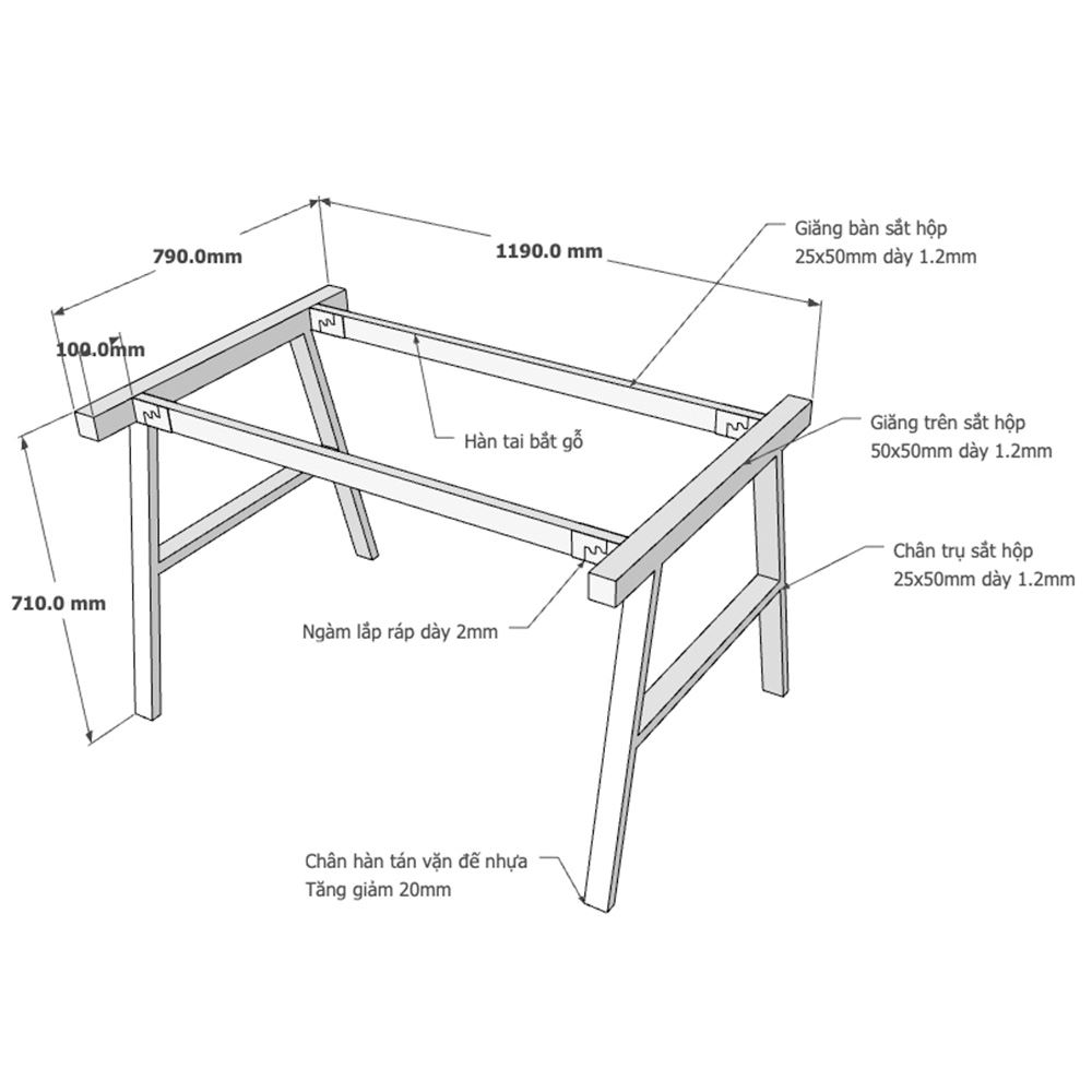 Kích thước chân sắt lắp ráp cho bàn 120x80cm