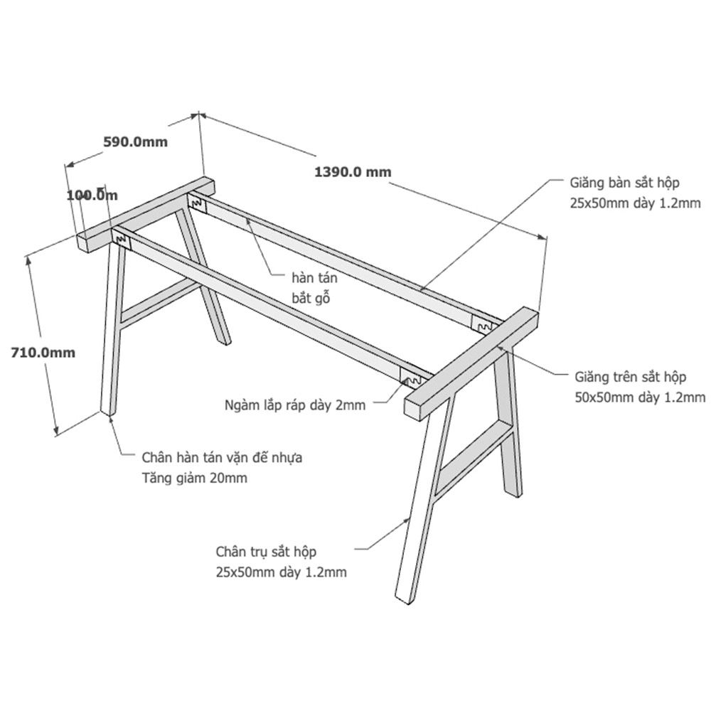 Kích thước chân sắt lắp ráp cho bàn 140x60cm