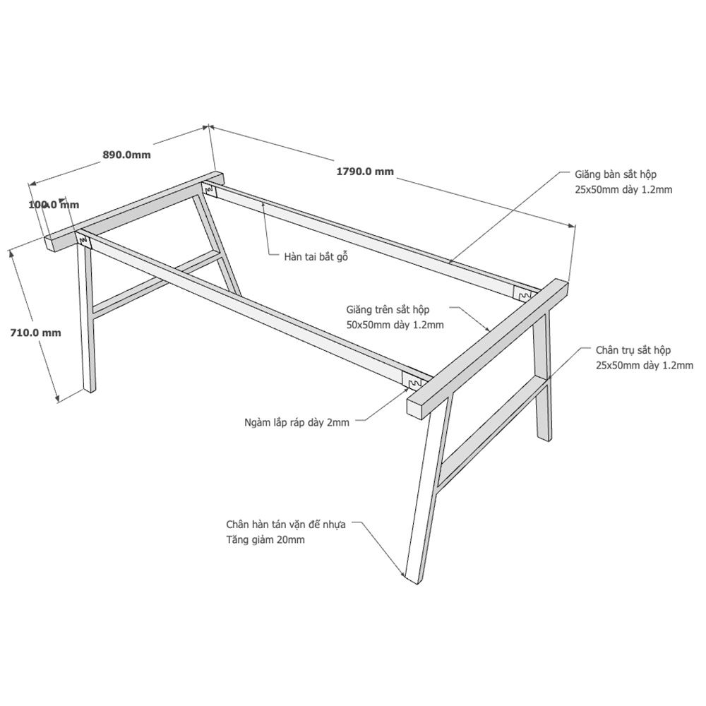 Kích thước chân sắt lắp ráp hệ Aconcept cho bàn 180x90x75cm