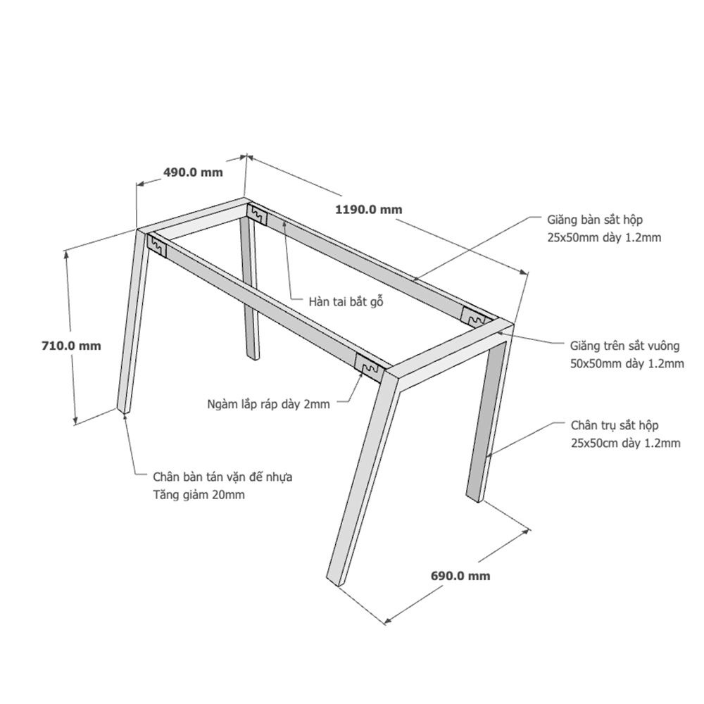 Kích thước chân sắt lắp ráp cho bàn 120x70cm