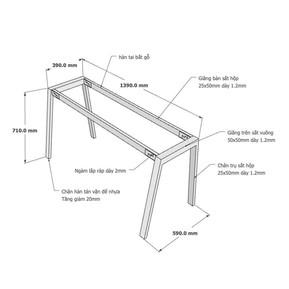 Kích thước chân sắt lắp ráp cho bàn 140x60cm
