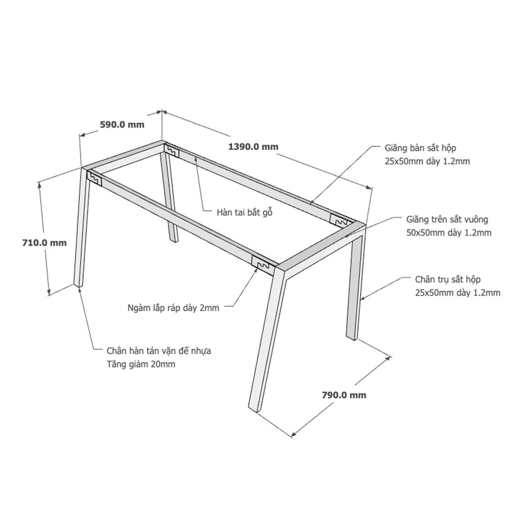 Kích thước chân sắt lắp ráp cho bàn 140x80cm