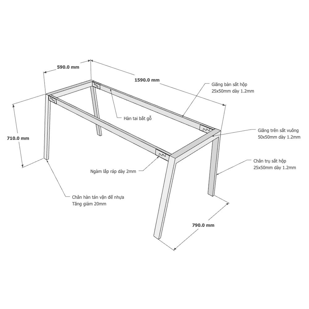 Kích thước chân sắt lắp ráp cho bàn 160x80cm