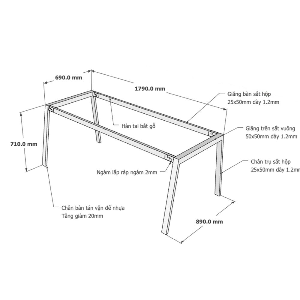 Kích thước chân sắt lắp ráp hệ Aton cho bàn 180x90cm