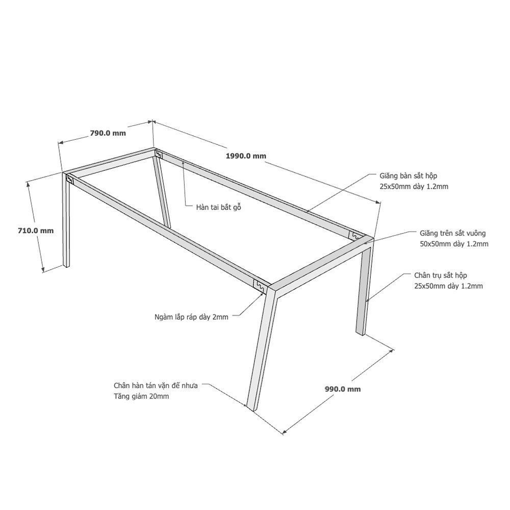Kích thước chân sắt lắp ráp cho bàn 200x100cm