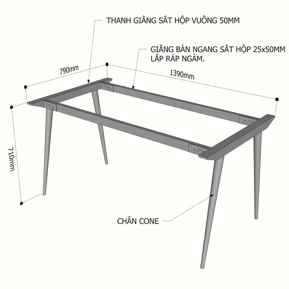 Kích thước chân sắt lắp ráp cho bàn 140x80cm