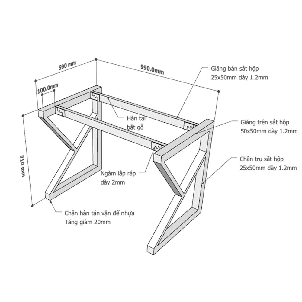 Kích thước chân sắt lắp ráp hệ Kconcept cho bàn 100x60cm
