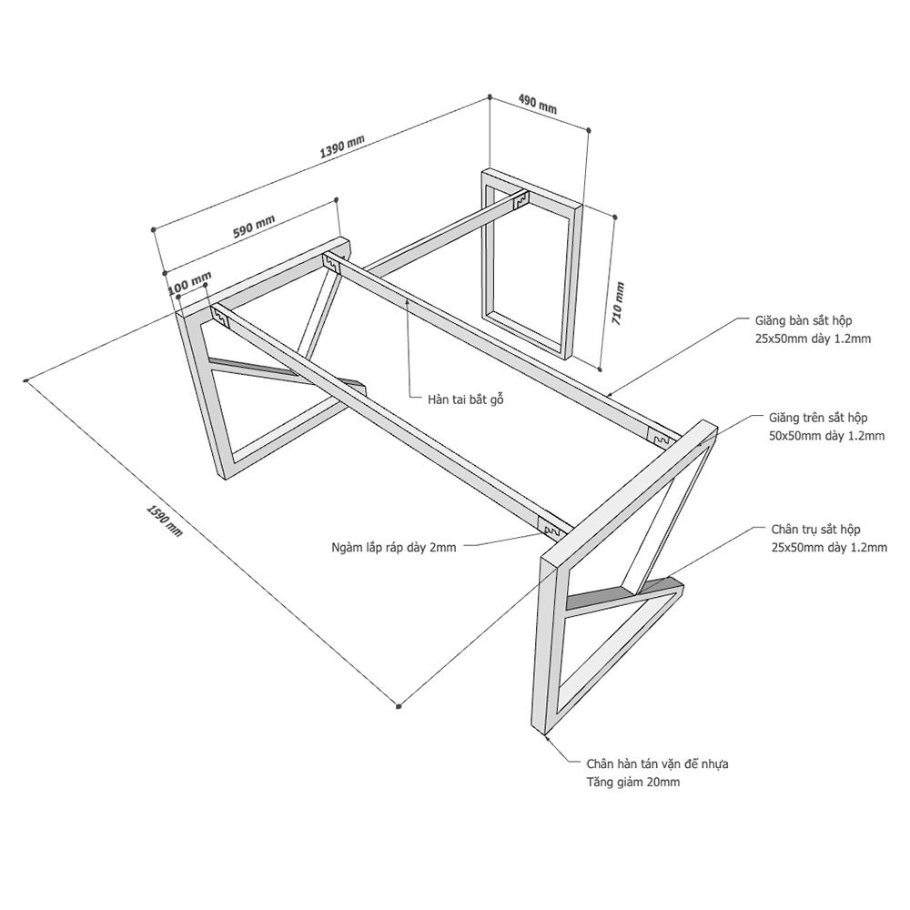 Chân bàn HCKC016 có một kết cấu vững chắc, nhờ có cơ cấu lắp ráp ngàm thông minh, khung chân bàn HCKC016 không chỉ ổn định khi sử dụng mà còn rất linh động với khả năng tháo lắp thủ công bằng tay một cách đơn giản. Với cơ cấu lắp ráp này bạn có thể dễ dàng vận chuyển, thay đổi vị trí bàn làm việc của mình mà không phải tốn quá nhiều công sức.