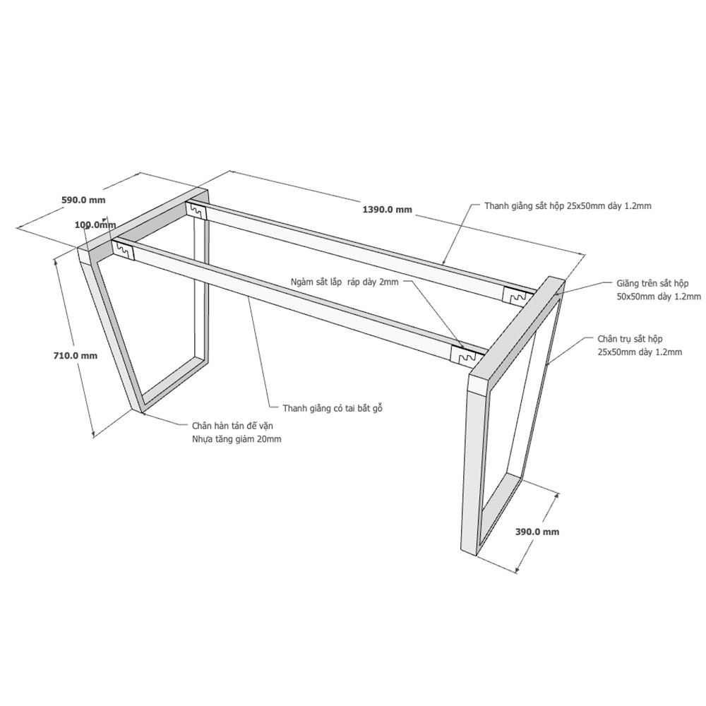Kích thước chi tiết chân sắt lắp ráp cho bàn 140x60x75cm