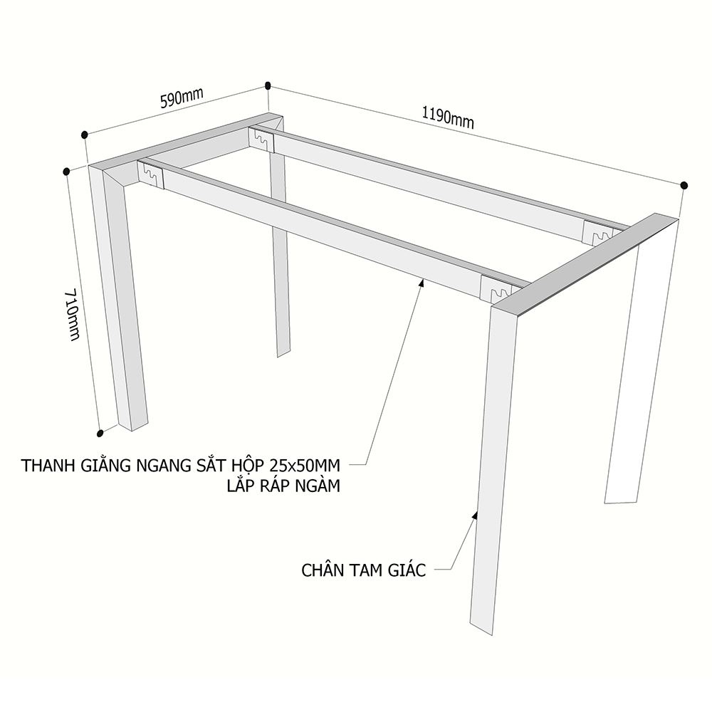 Kích thước chân sắt lắp ráp hệ Trian cho bàn 120x60cm