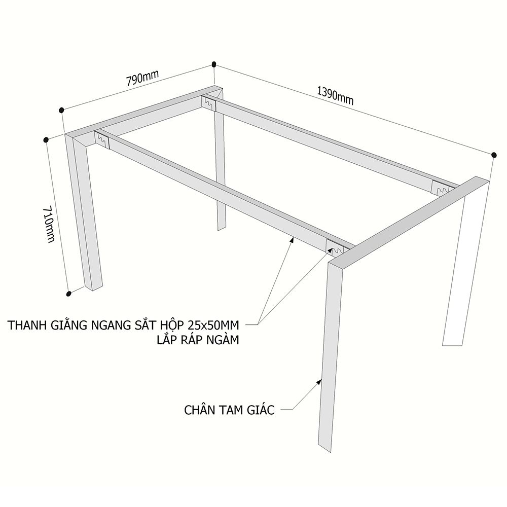 Kích thước chân sắt lắp ráp hệ Trian cho bàn 140x80cm