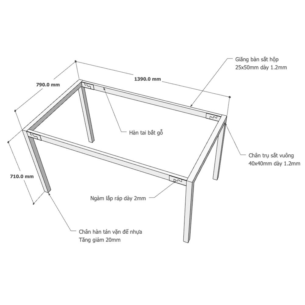 Kích thước chân sắt lắp ráp cho bàn 140x80cm