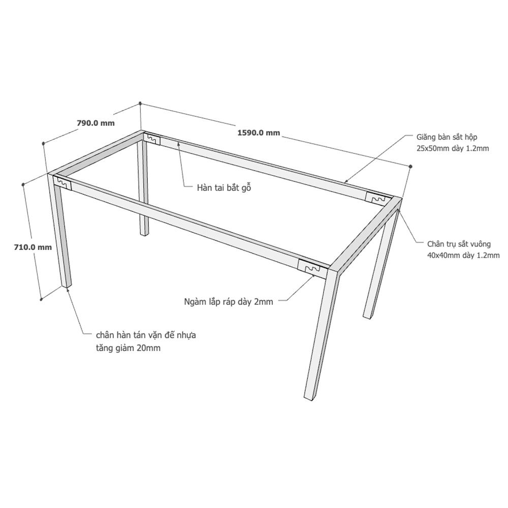 Kích thước chân sắt lắp ráp hệ Uconcept cho bàn 160x80cm