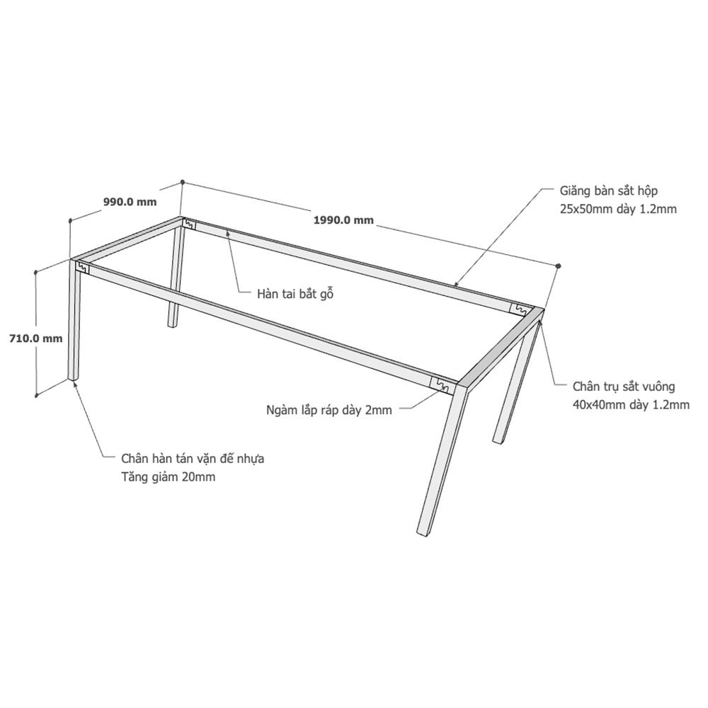 Kích thước chân sắt lắp ráp hệ Uconcept cho bàn 200x100cm