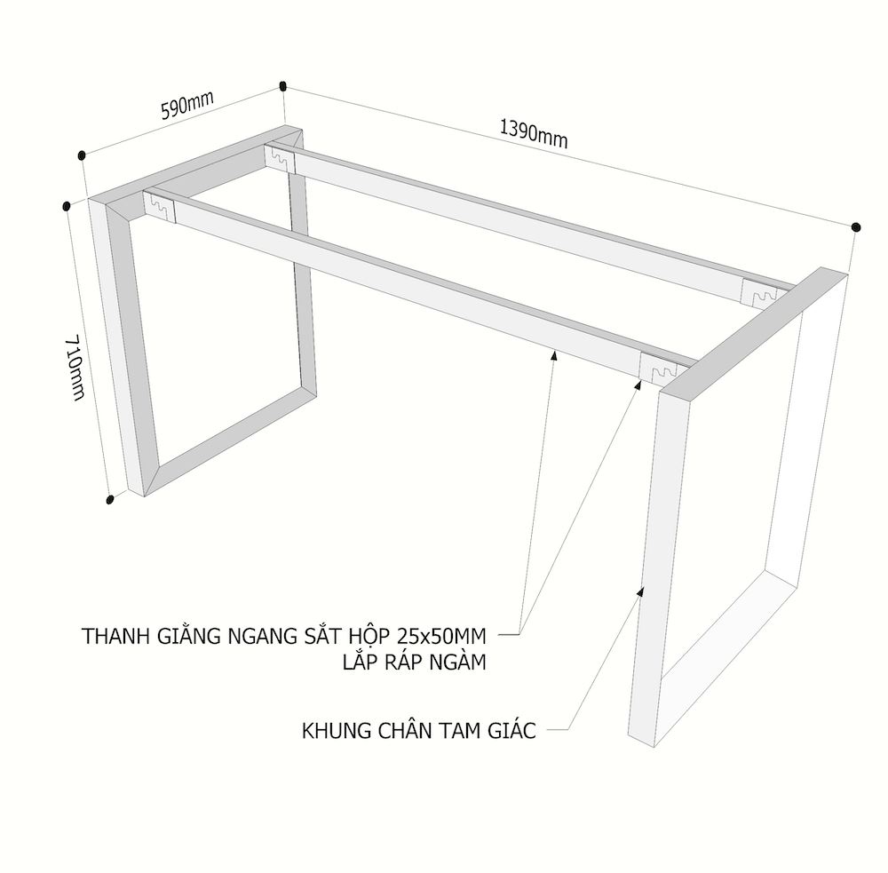 Kích thuớc chân sắt tam giác lắp ráp cho bàn 140x60cm