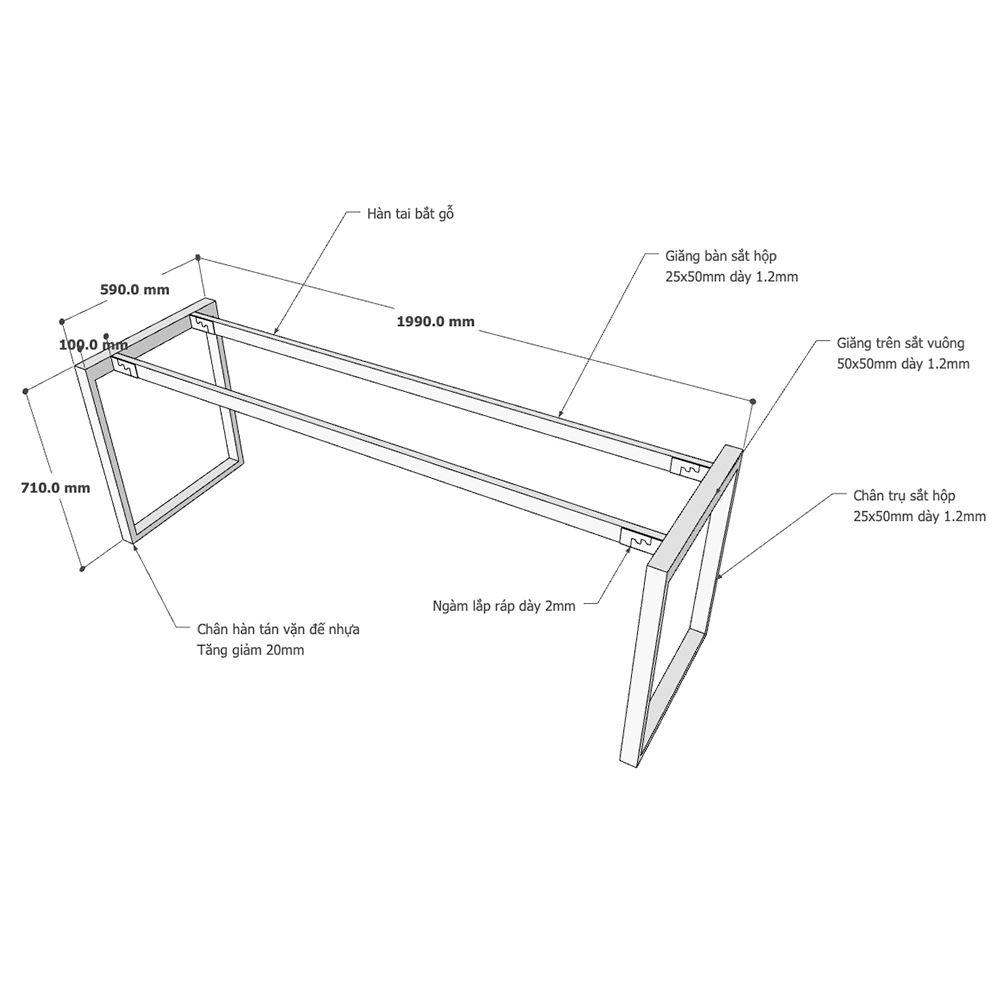 Chi tiết kích thước chân sắt cho bàn 200x60cm