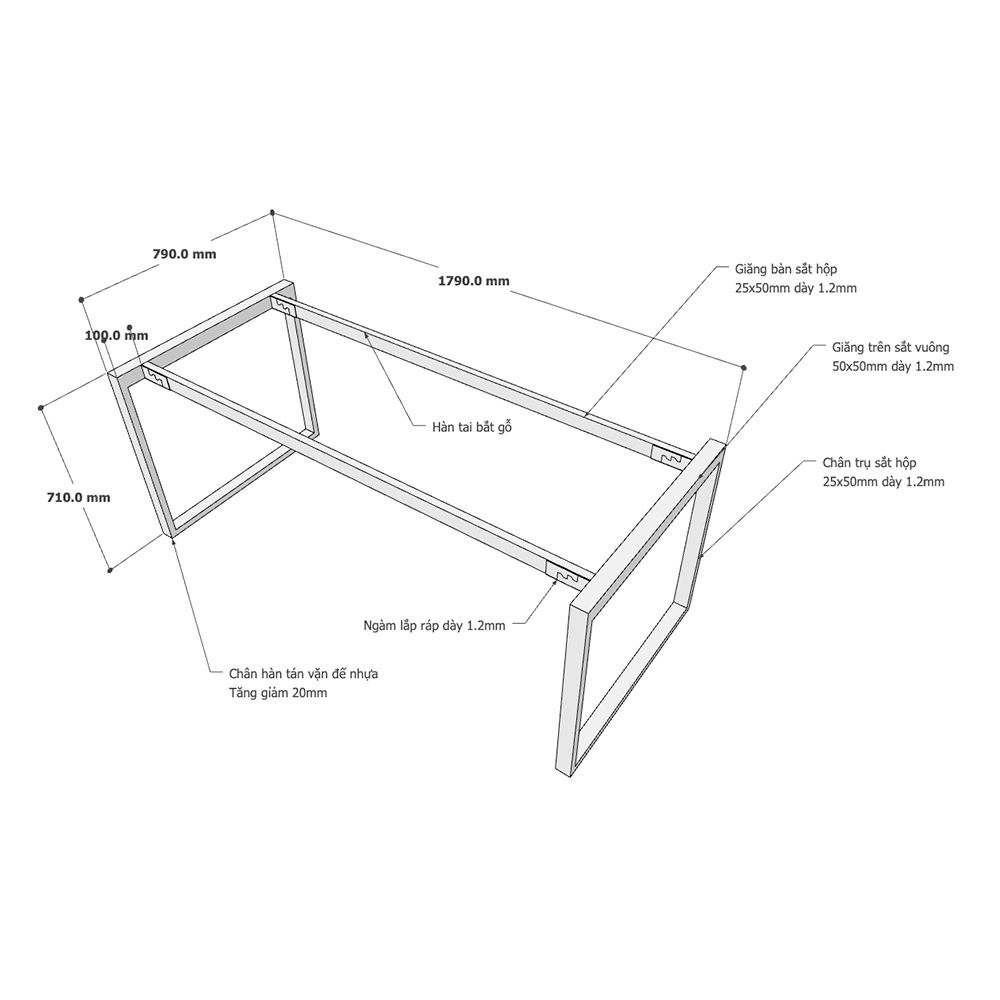 Chi tiết kích thước chân sắt cho bàn 180x80cm