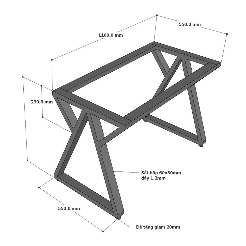 Với thiết kế sáng tạo, chân bàn CHBBA030 mang đến một vẻ đẹp công nghiệp mạnh mẽ, không kém phần tinh tế khi kết hợp với mặt bàn gỗ tự nhiên. Các đường nét vuông vắn, góc cạnh được hàn chắc chắn, tạo nên một cấu trúc vững chãi, chịu lực vượt trội. Sự kết hợp hài hòa giữa các thanh sắt hộp 60x30cm dày 1,2mm đã tạo nên một khung hình tam giác cân vững chắc, vừa đảm bảo tính ổn định, vừa mang đến vẻ đẹp mạnh mẽ, cá tính.