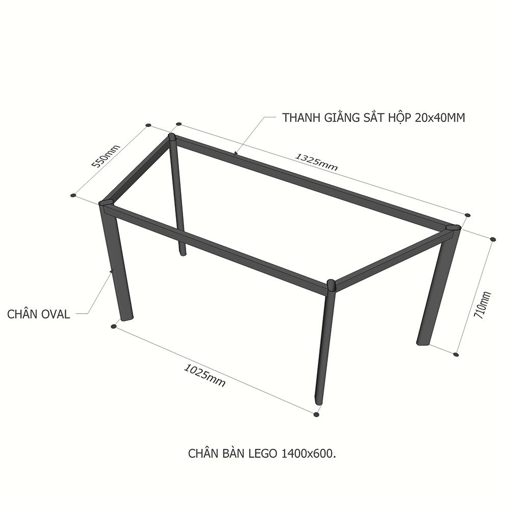 Chi tiết chân sắt cho bàn hình thang vuông 140x60cm hệ Lego 2