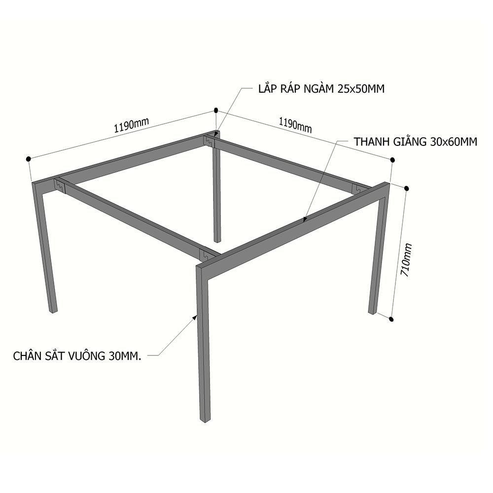 Kích thước chân sắt lắp ráp bàn 120x120cm hệ Slean