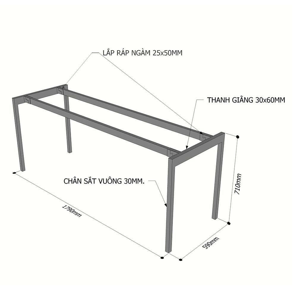 Kích thước chân sắt lắp ráp cho bàn 180x60cm hệ Slean