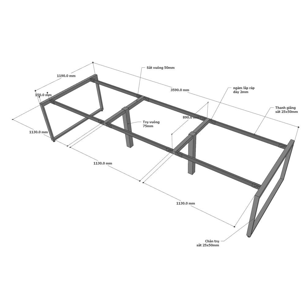 - Giăng bàn sắt hộp 25x50mm hàn tán trong lắp ráp ngàm bằng ốc lục giác chắc chắn