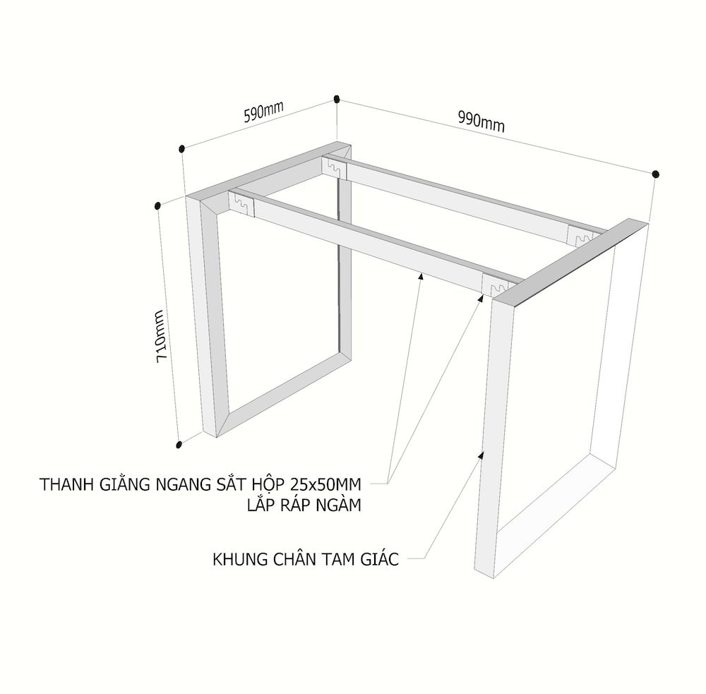 Kích thước chân sắt tam giác lắp ráp hệ Trian II cho bàn 100x60cm