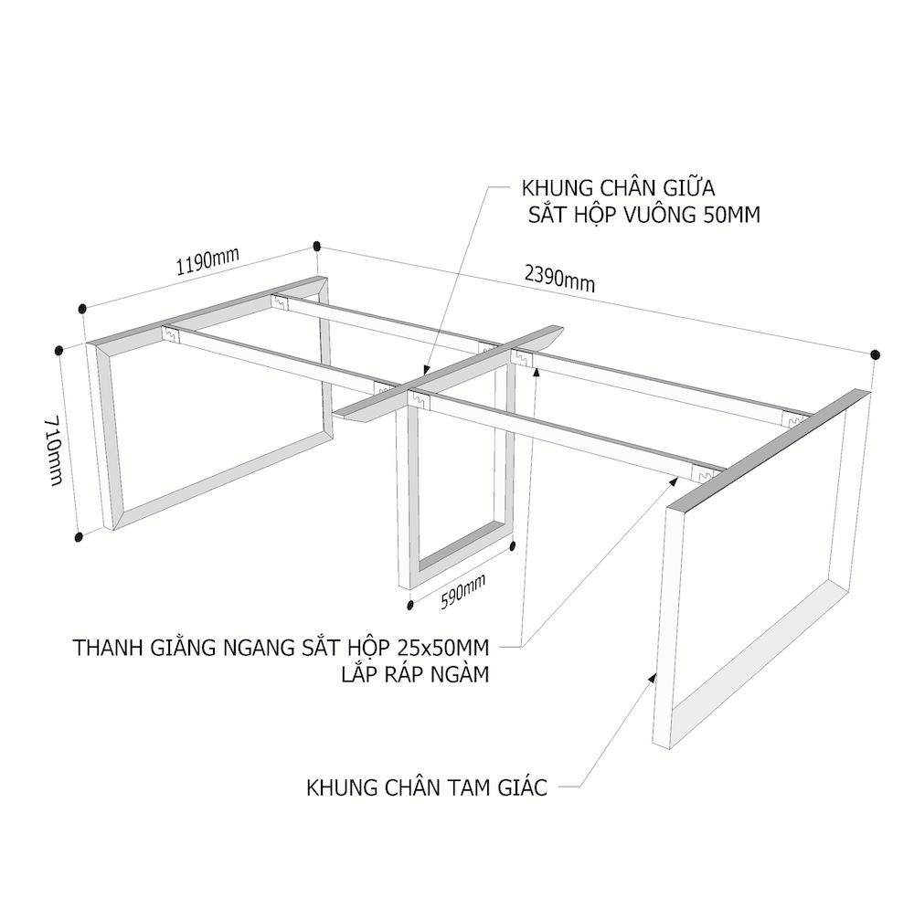 Chân sắt tam giác lắp ráp cho bàn kích thước 240x120cm