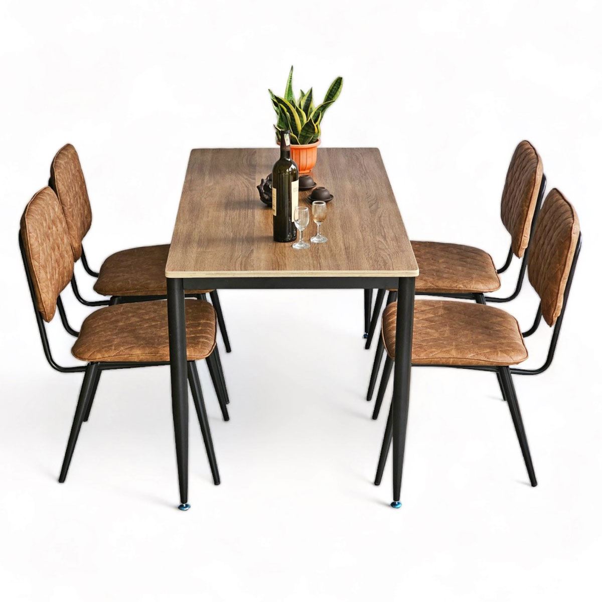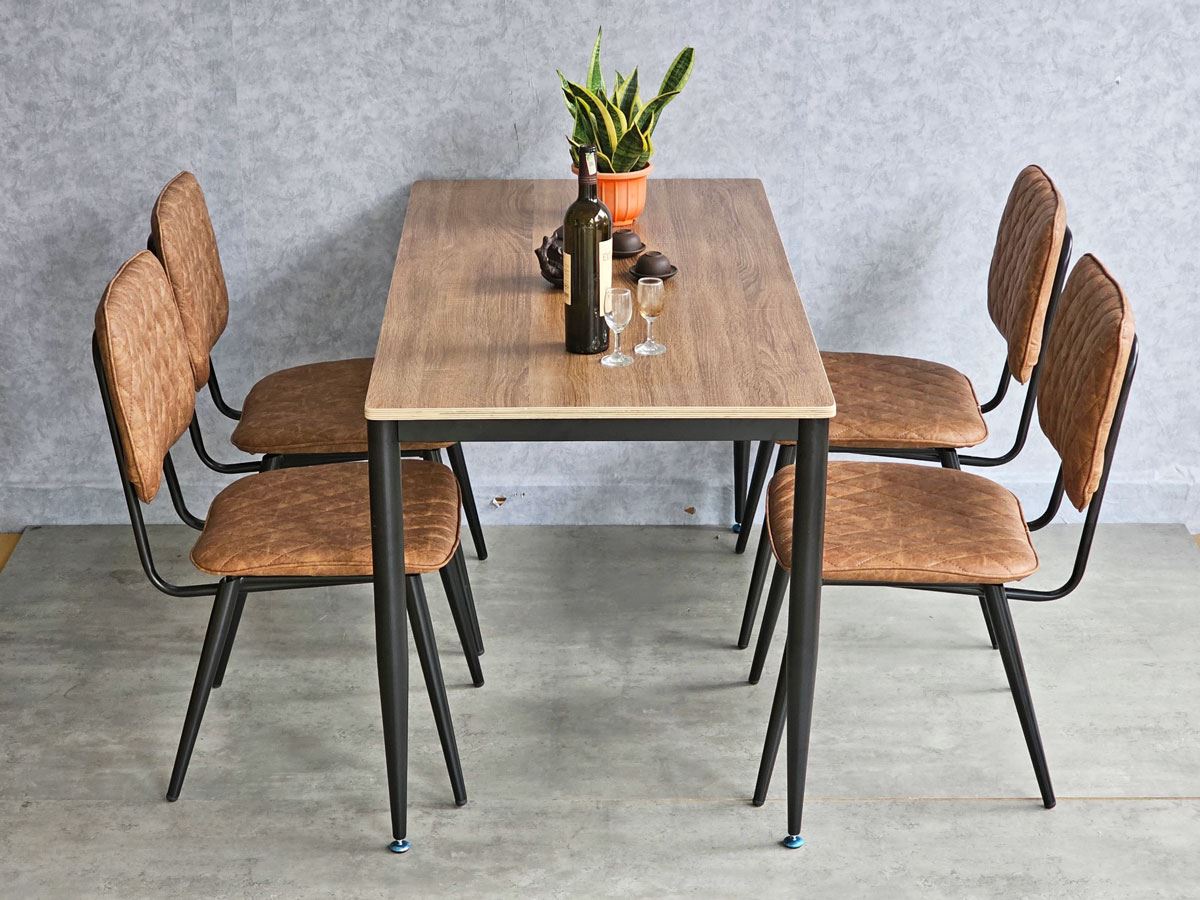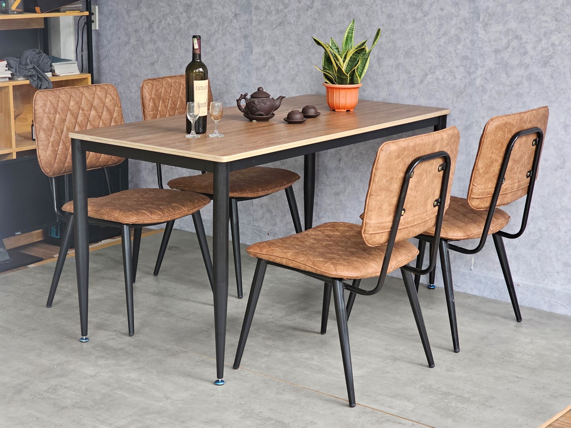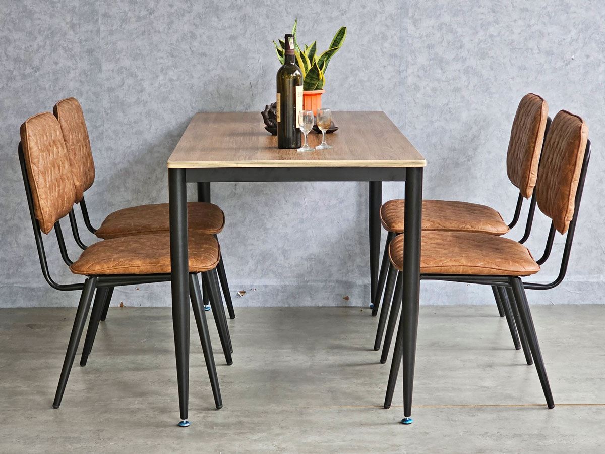Trong combo CBBA125 bao gồm 1 bàn ăn 140x70cm gỗ plywood và 4 ghế ăn bọc nệm.