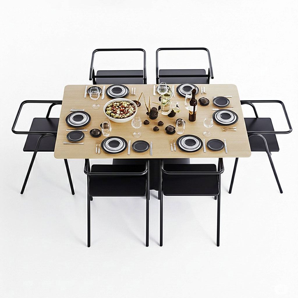 Trong combo BBA188 bao gồm 1 bàn ăn chữ nhật và 6 ghế Cozy