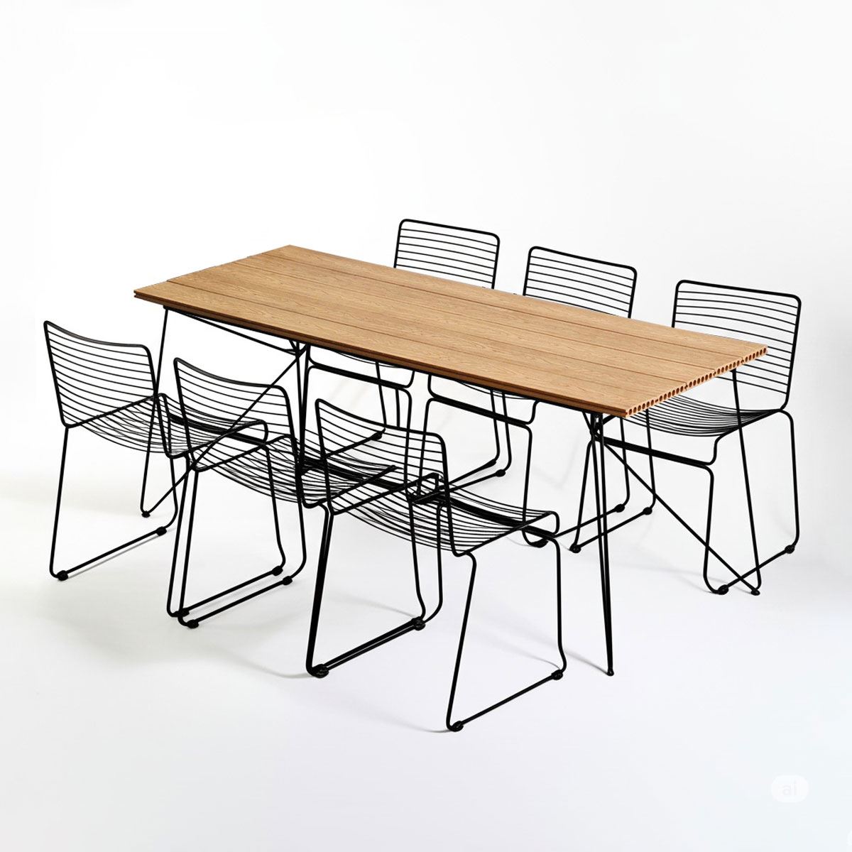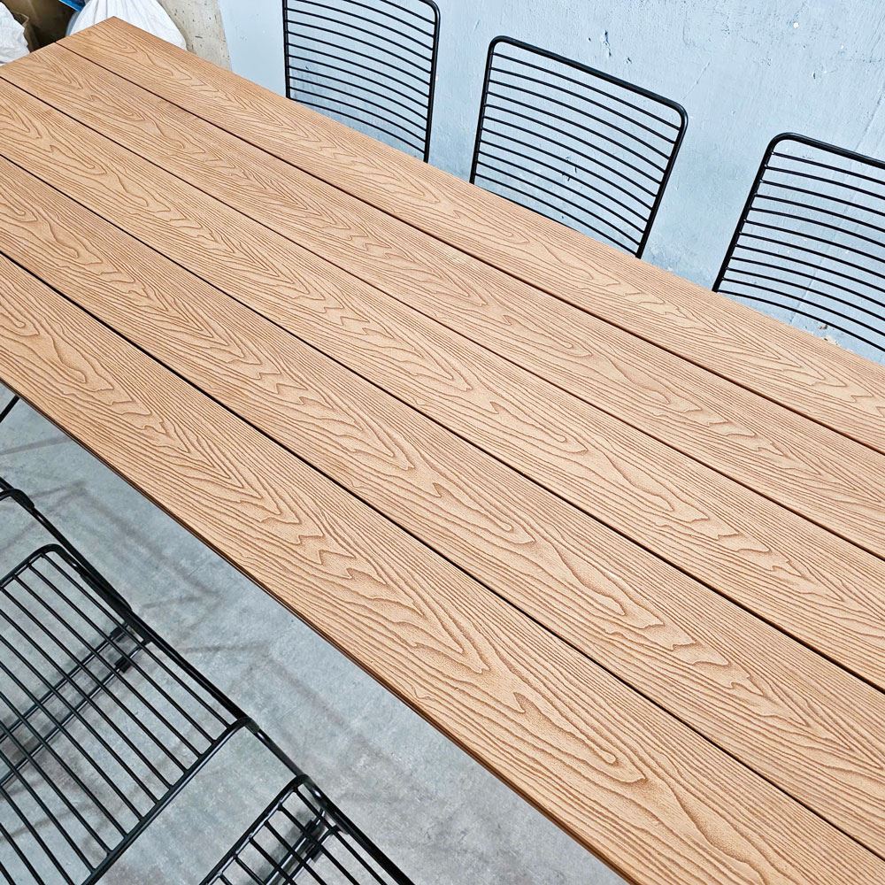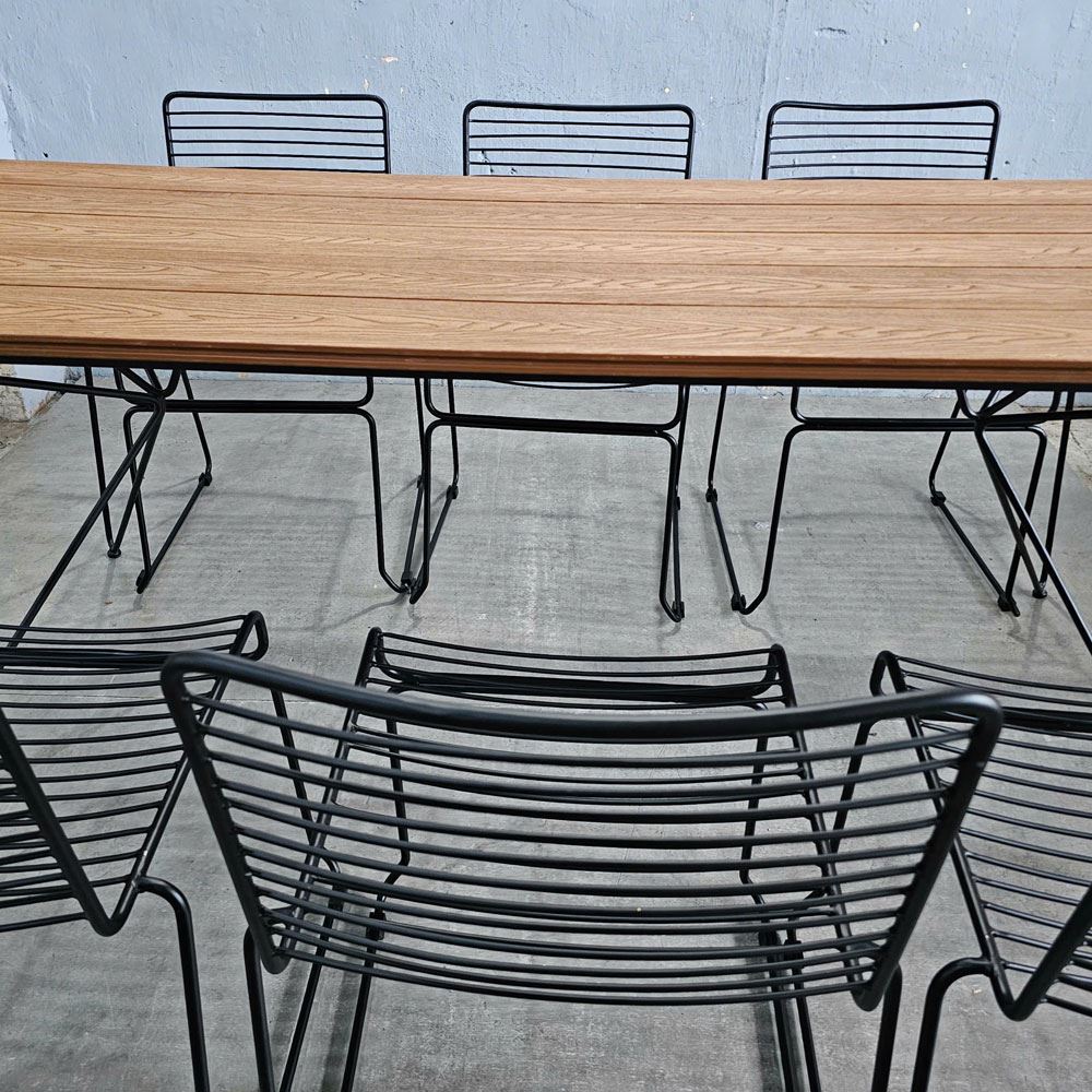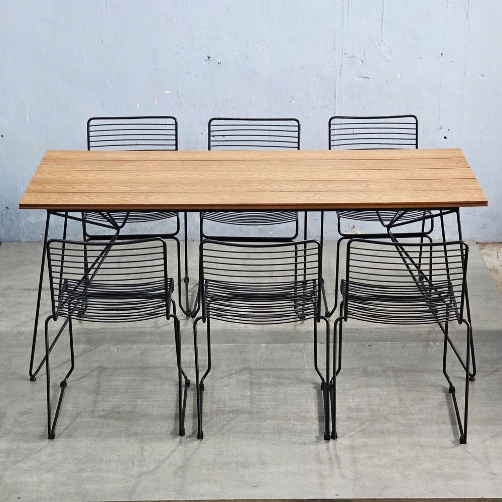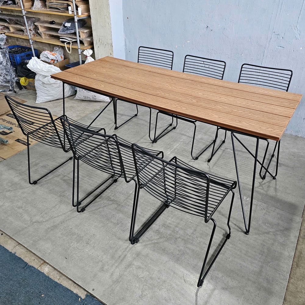 Trong combo CBNT010 bao gồm 1 bàn chữ nhật và 6 ghế sắt