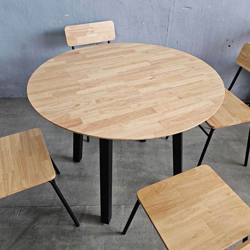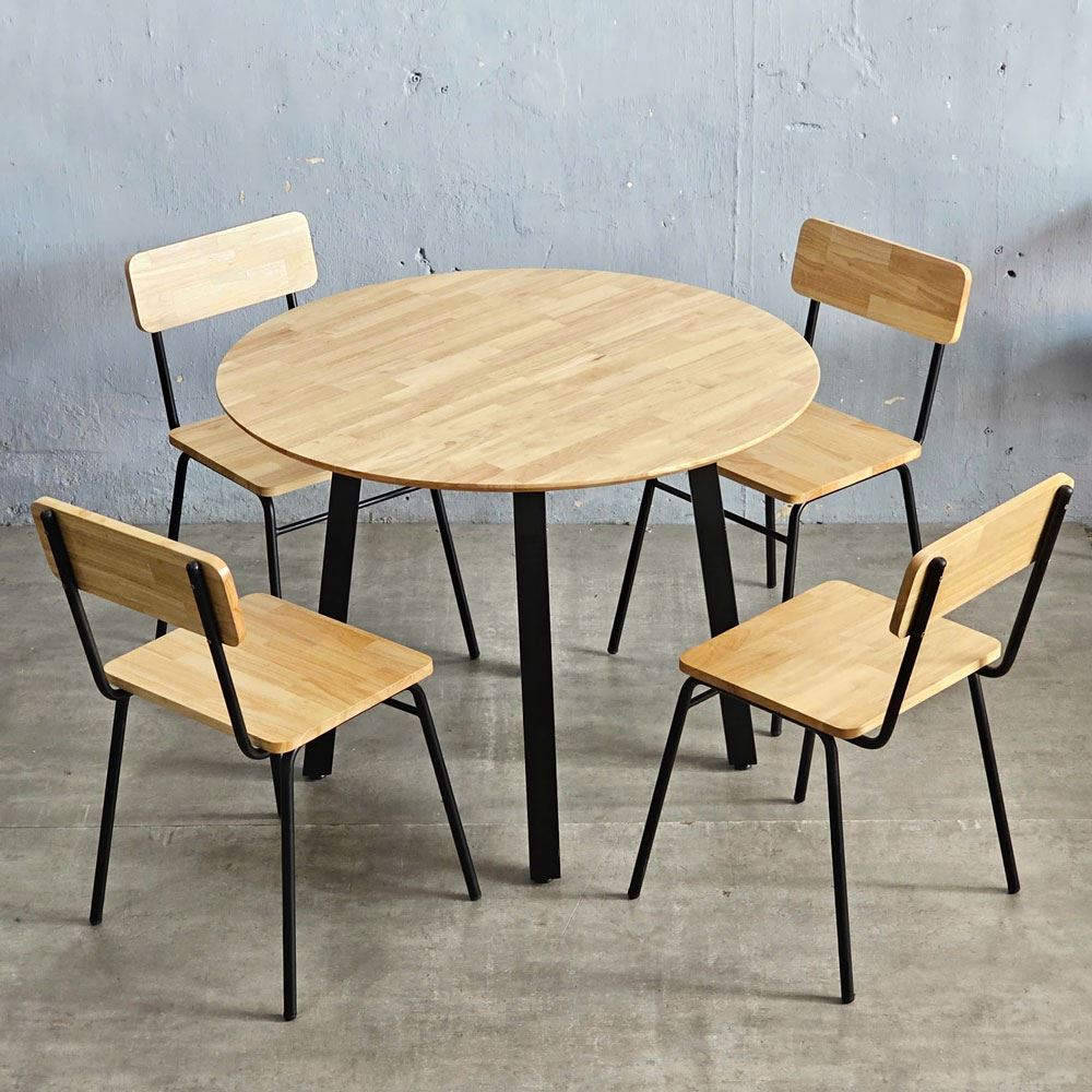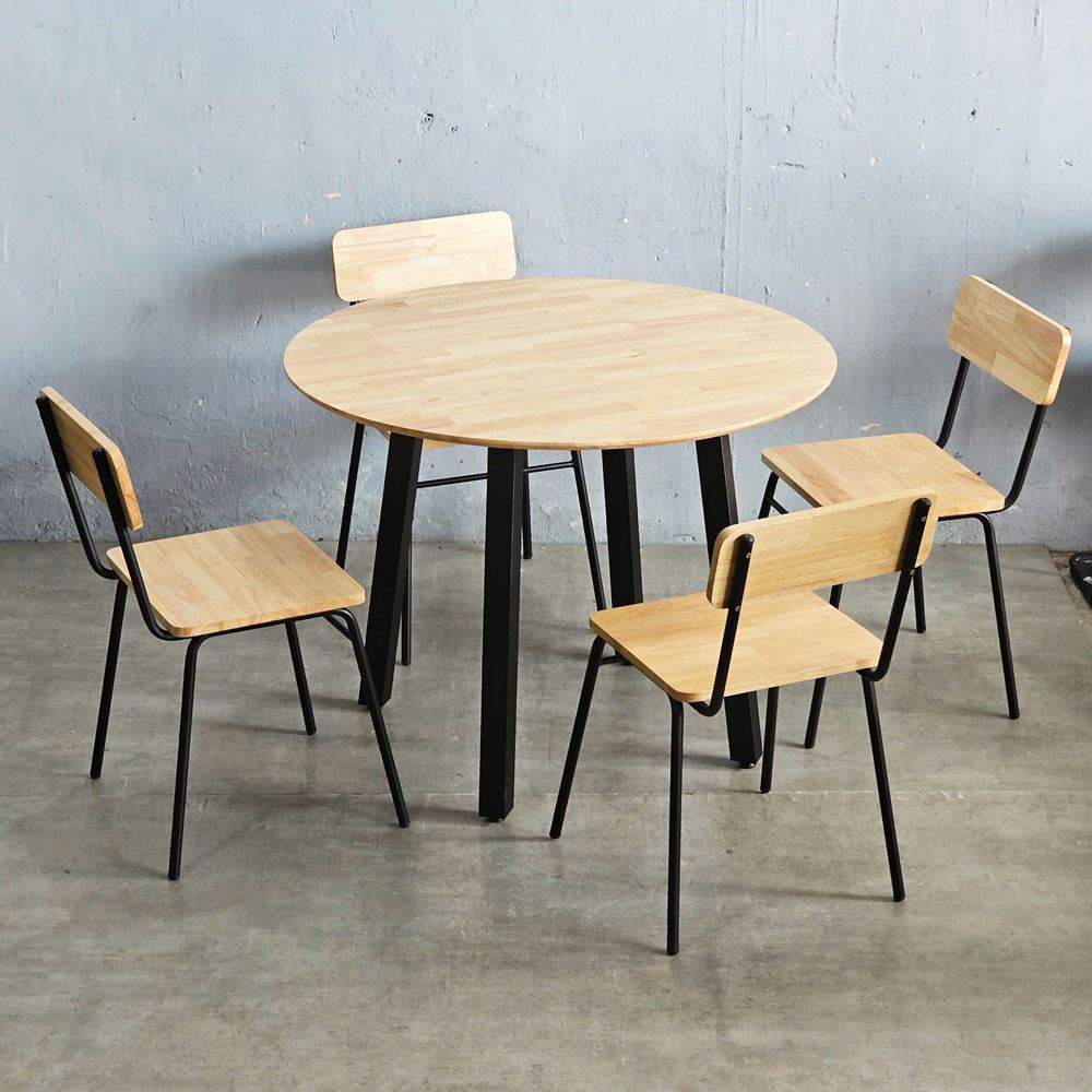 Trong combo BBA180 bao gồm 1 bàn ăn tròn và 4 ghế ăn khung sắt gỗ cao su.