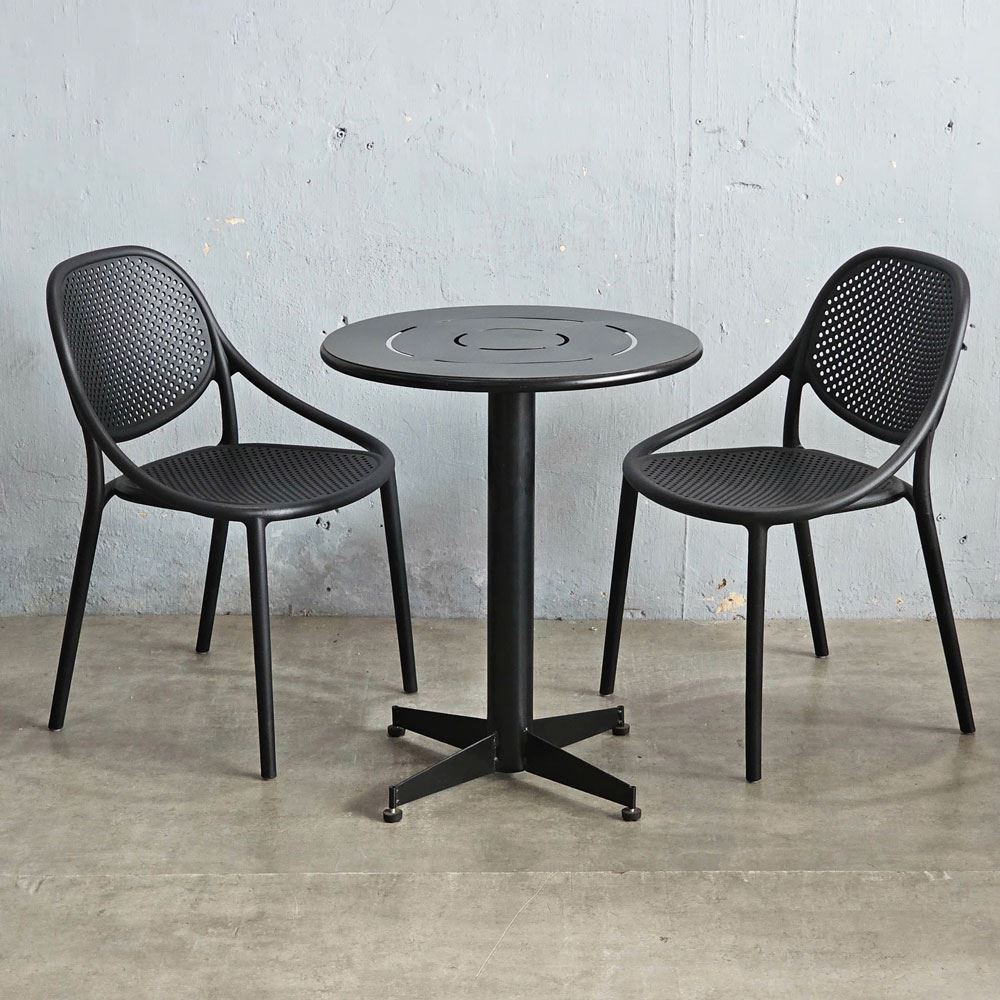 Combo bàn ghế cafe dành cho 2 người ngồi. Trong combo CBCF326 bao gồm 1 bàn cafe tròn và 2 ghế RENO nhựa.