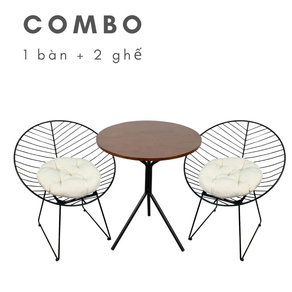 Combo Bàn Cafe Tròn 60cm Và 2 Ghế Cafe Sắt Hình Nón Có Nệm