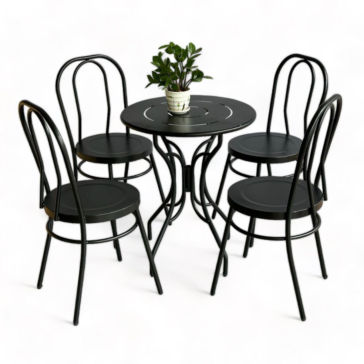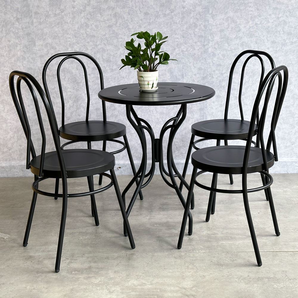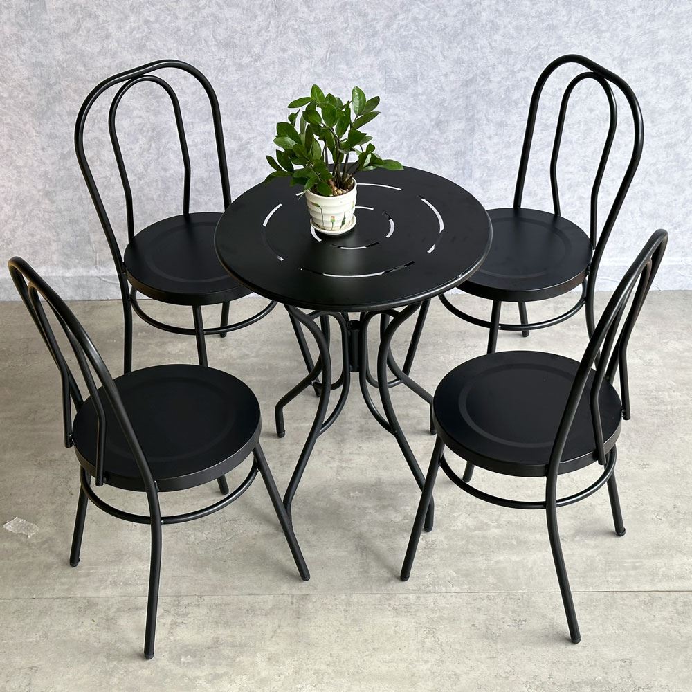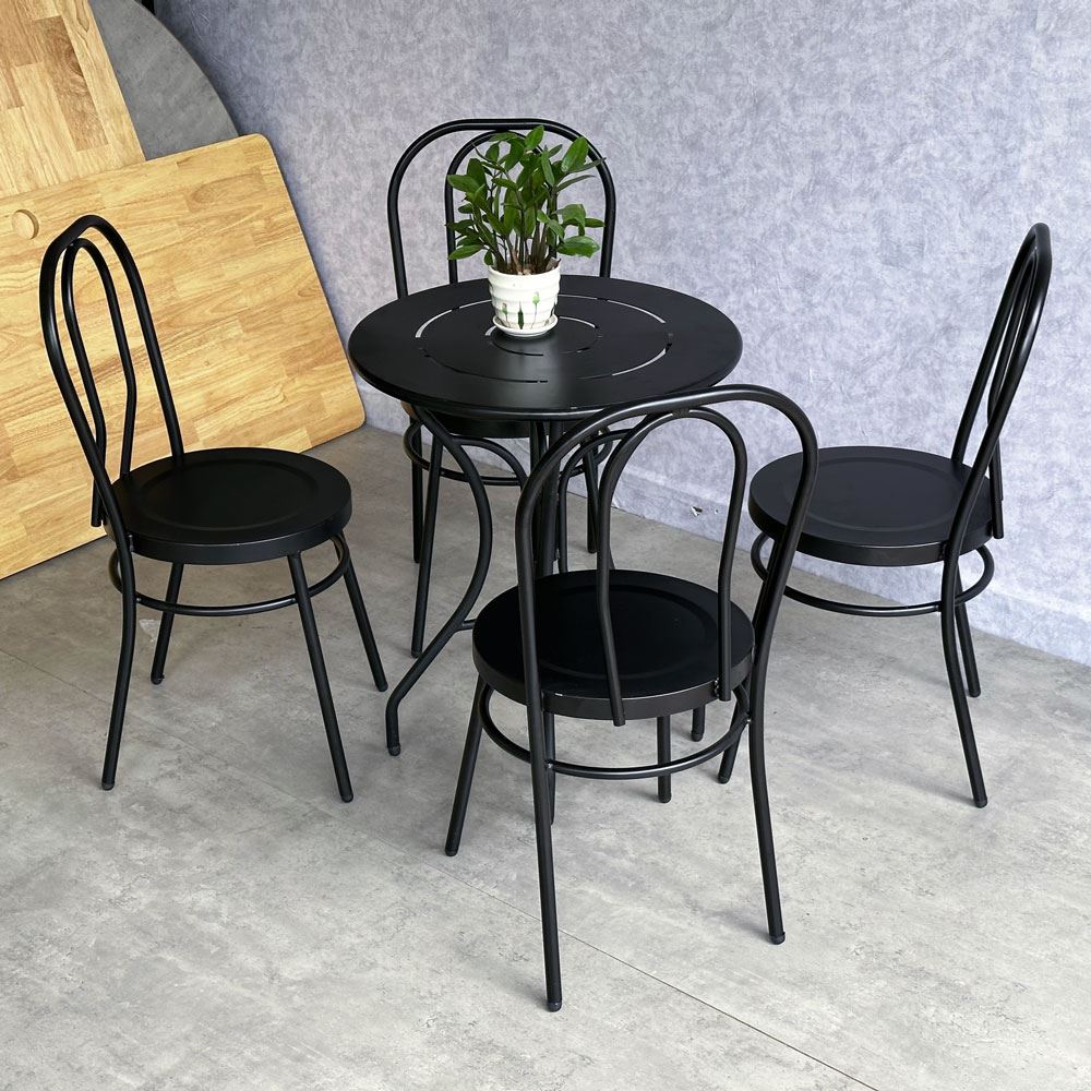 Trong combo CBCF296 bao gồm 1 bàn sắt tròn và 4 ghế cafe sắt.
